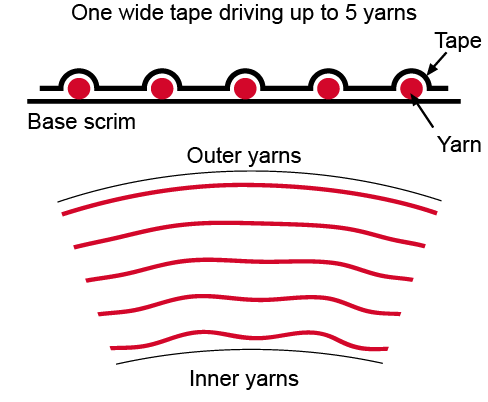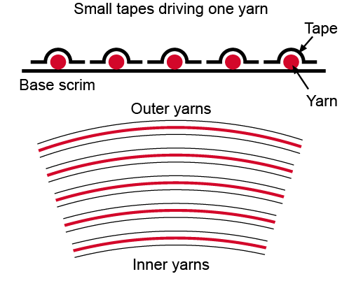 When bending, multi tapes structure keeps the same tension between outer and inner yarns